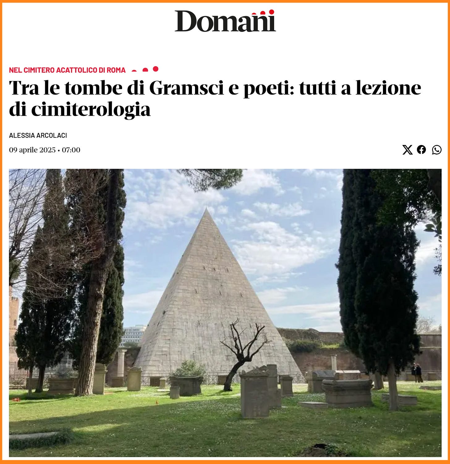 All’ombra della Piramide Cestia, dove i gatti si assopiscono sulle tombe di Gramsci e Keats, dove riposano Shelley e Camilleri, si apre uno degli ingressi più inaspettati alla filosofia: il Cimitero Acattolico di Roma, un giardino di trecento anni che custodisce il silenzio nel cuore caotico di Testaccio.